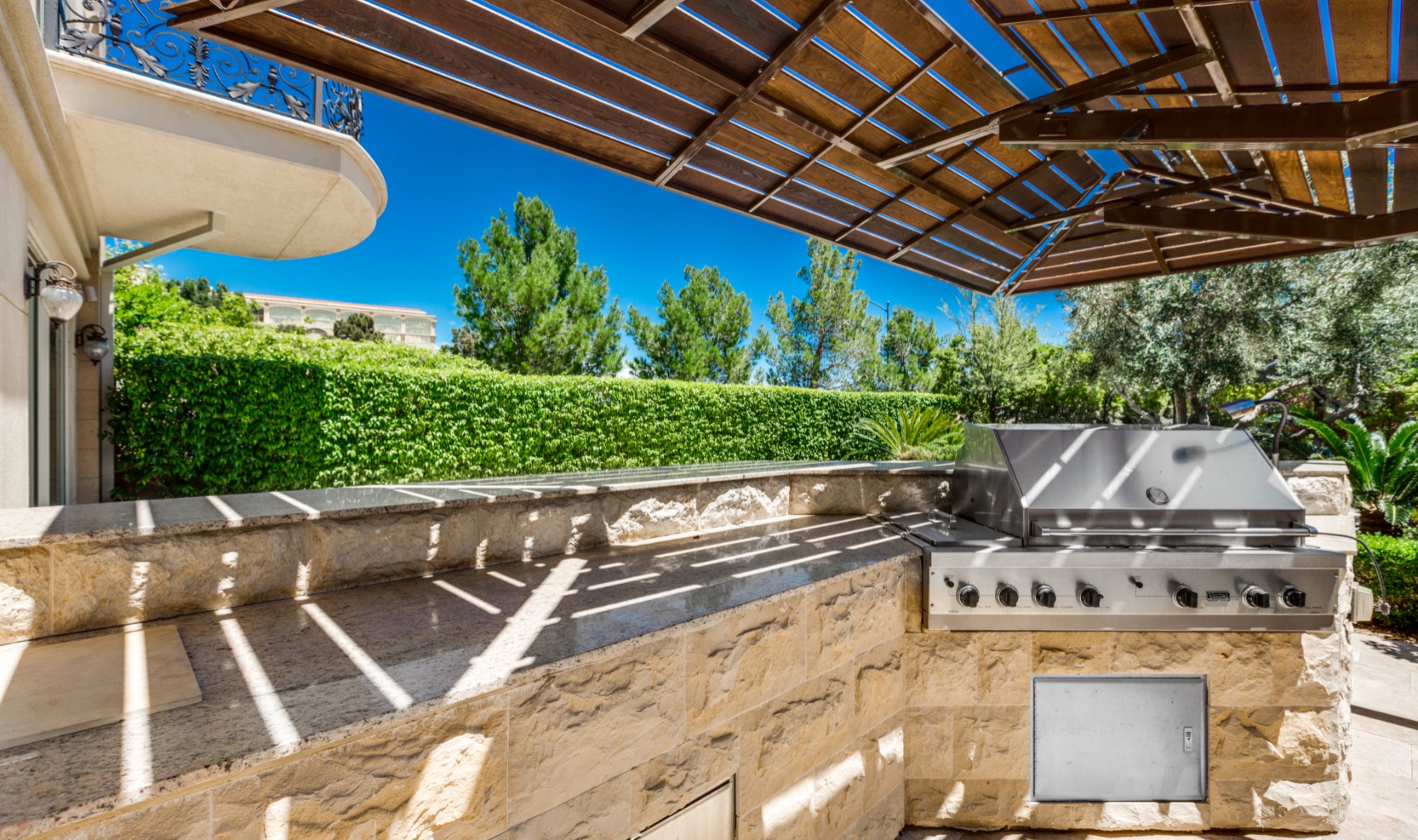 Including a large built-in Viking BBQ, rose gardens, and a stunning iron gazebo, the backyard is maintained by the HOA, but for the exclusive use of the tenant. It is also has a secured private entrance that can be accessed without going through the main gate and provides easy access to the nearby Suncoast Casino, Tivoli Village, and Boca Park.